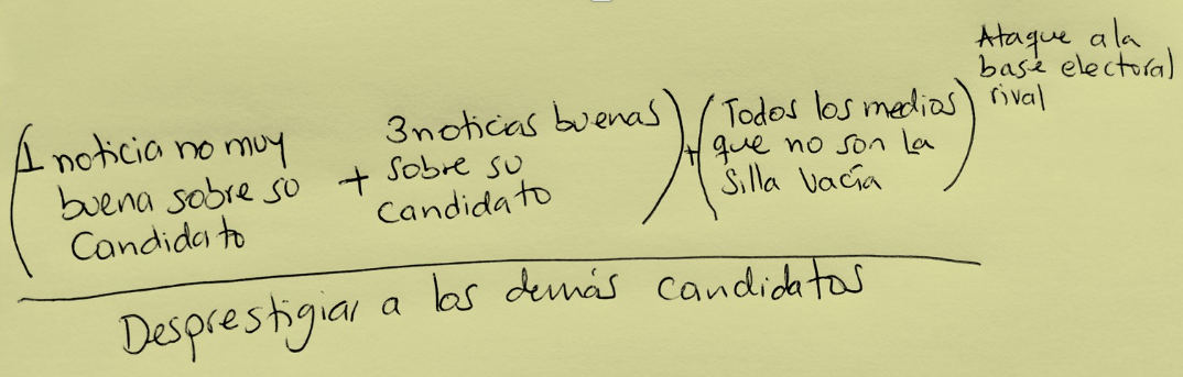 Recordando a mi profesora de matemáticas, Beatriz Caballero, de quien no tengo gratos recuerdos, y apelando al título de esta reflexión, ya dedujimos a quién le va La Silla Vacía y su estrategia de campaña fajardista; Semana es abierta con sus intereses políticos; entonces, por favor resuelvan las fórmulas y digan los otros medios corporativos e independientes a quiénes apoyan por debajo de cuerda.